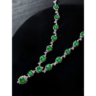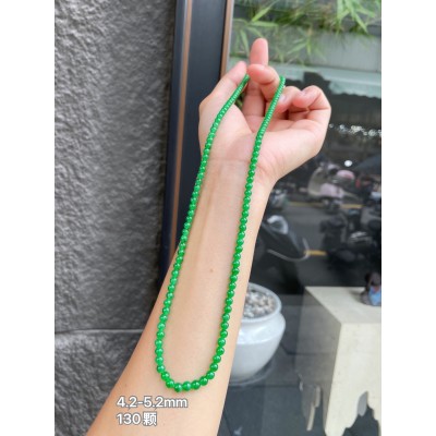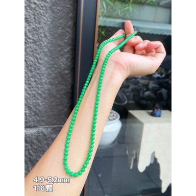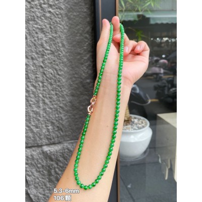 【翡翠珠链】冰种满绿翡翠珠链,色辣色浓,种水极佳,颗颗圆润饱满。