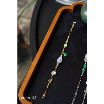 【翡翠手链】18k金镶紫罗兰葫芦手链,淡淡温柔紫,小滴溜设计