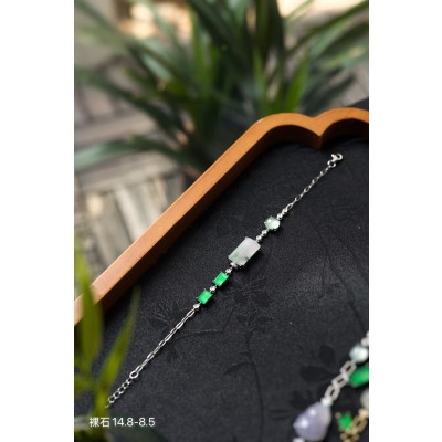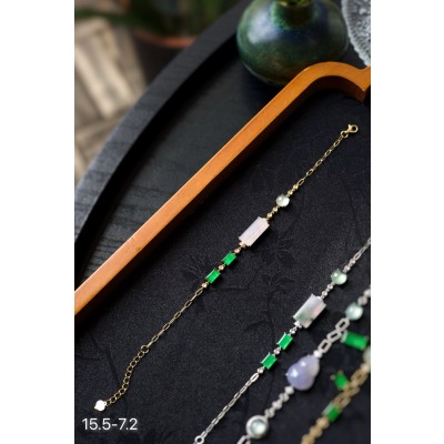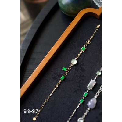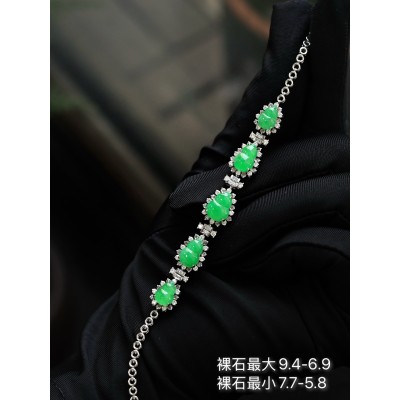 【翡翠手链】18k金镶蛋面手链,高冰蛋面搭配起光绿无事牌,小滴溜设计