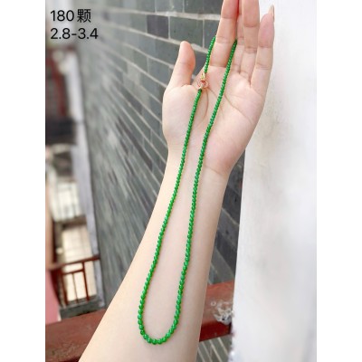 【翡翠珠链】冰辣阳绿米小珠,颜色靓丽,种水老长,通起透胶