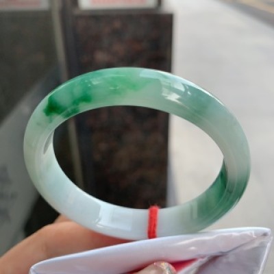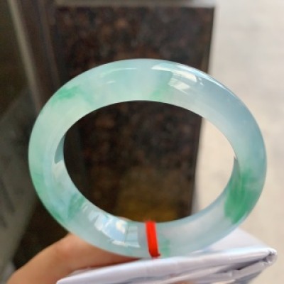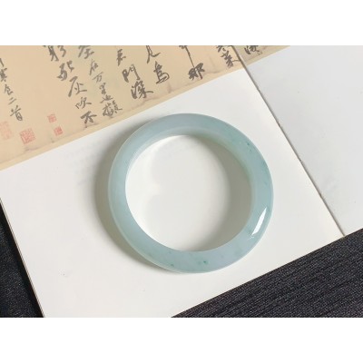【翡翠手镯】高级国风玉镯,56/57圈口,冰润飘花正圈,尺寸:56.7×12.6×8.5mm。