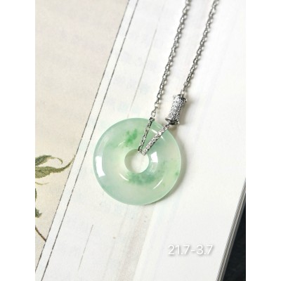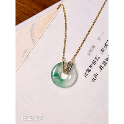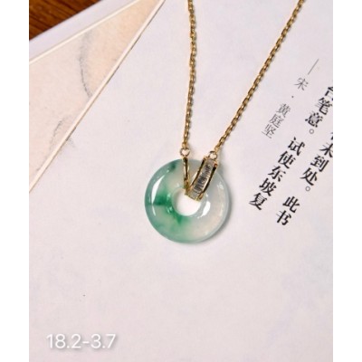 【翡翠项链】18k金镶平安扣吊坠锁骨链,飘绿,半山半水意境