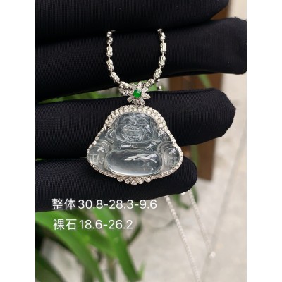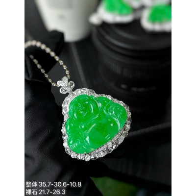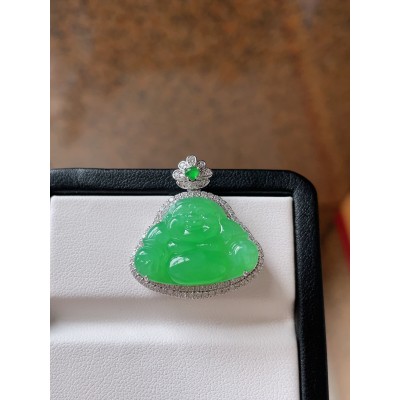 【翡翠吊坠】18k满绿佛公吊坠,色辣,阳绿,巧妙的扣头设计,简约不简单