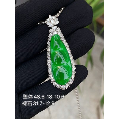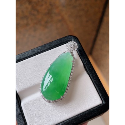 【翡翠吊坠】18k金镶满绿福瓜吊坠,种色俱佳,饱满细腻,非常灵动的设计