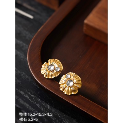 【翡翠耳坠】18k金镶蛋面耳钉,精选玻璃种炸光蛋面,荷叶设计,非常立体,宛如荷叶上的两滴水滴