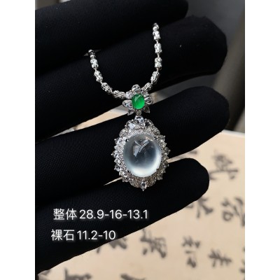 【翡翠吊坠】18k金镶蛋面吊坠,小鸽子蛋,无封底,双眼皮