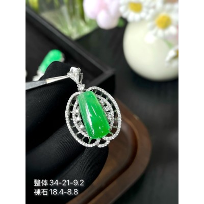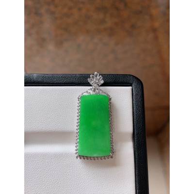 【翡翠吊坠】18k金镶满绿无事牌吊坠,厚庄,底子非常细腻,无封底,老料子,性价比很不错