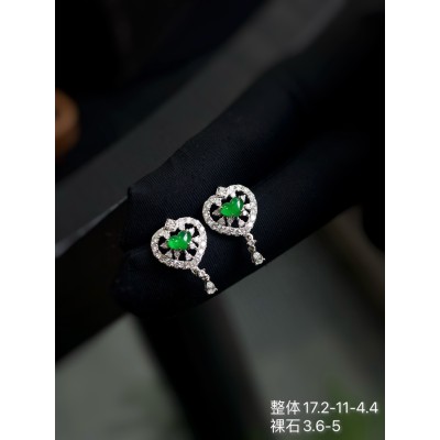 【翡翠耳坠】18k金镶满绿心形耳坠,设计款,戴上变氛围感美女