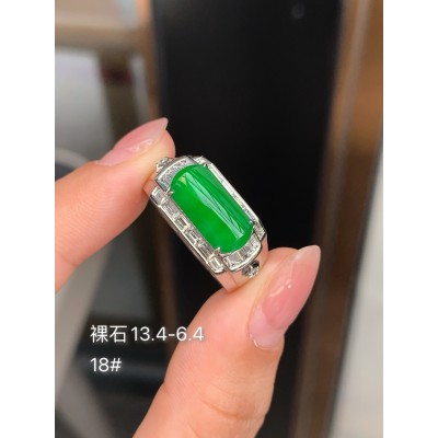 【翡翠戒指】18k金镶满绿马鞍戒指,种色俱佳,水润起光,霸气款,男女可戴