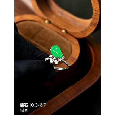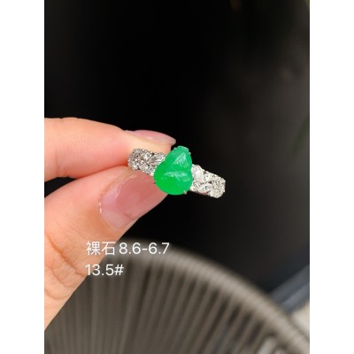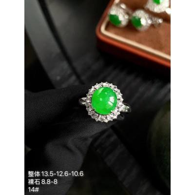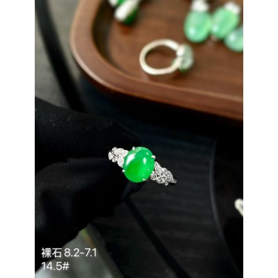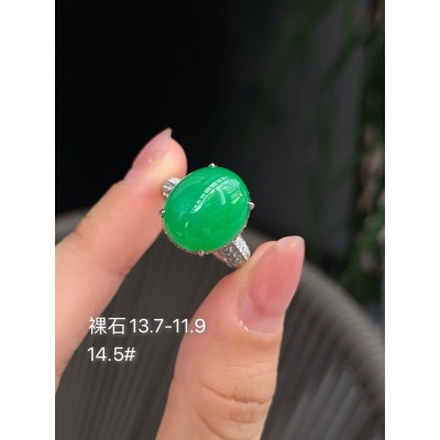 【翡翠戒指】满绿蛋面戒指,色阳,翠绿珠圆,水润饱满,亮亮的