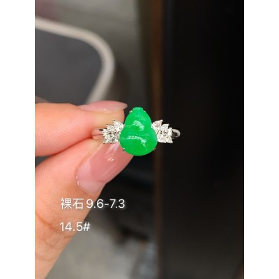 【翡翠戒指】18k金镶满绿葫芦戒指,颜色阳,水润起光,亮亮的