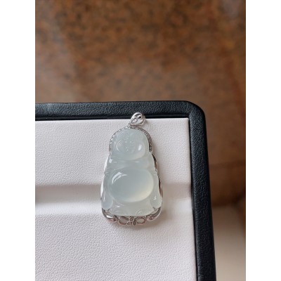 【翡翠吊坠】冰冰透透一刀切的佛公吊坠,饱满细腻,自带佛光
