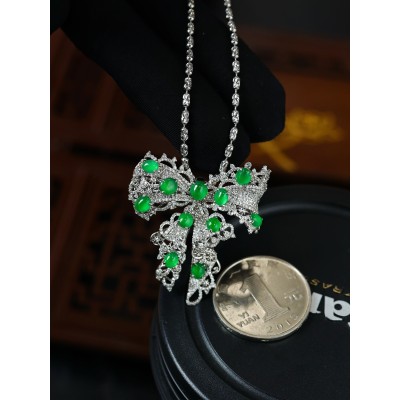 【翡翠项链】18k金镶满绿无事牌项链,主石颜色辣,锁骨链设计,精致百搭