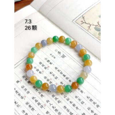 【翡翠珠链】冰润彩色翡翠手串,马卡龙的翡翠是初春嫩嫩新芽,是暖冬皑皑白雪