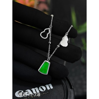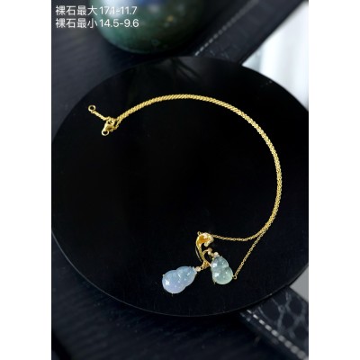 【翡翠项链】18k金镶葫芦项链,锁骨链,双葫芦设计款,颜色透亮