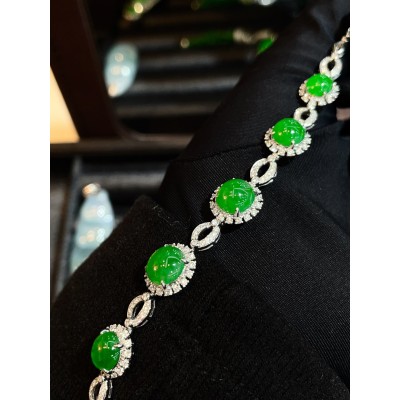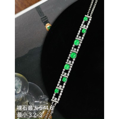 【翡翠手链】18k金镶满绿蛋面手链,颜色阳,颗颗精选,经典款,耐看不过时,大气上档次