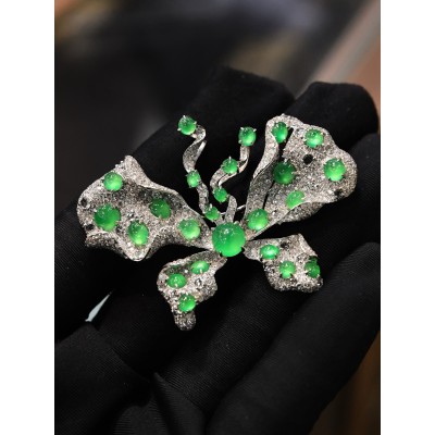 【翡翠胸针】设计款蝴蝶蛋面胸针,精选颗颗起光蛋面,满钻镶嵌,非常灵动的造型