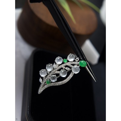 【翡翠胸针】18k金镶胸针吊坠两用款,花型设计,优雅大方,点缀西装大衣