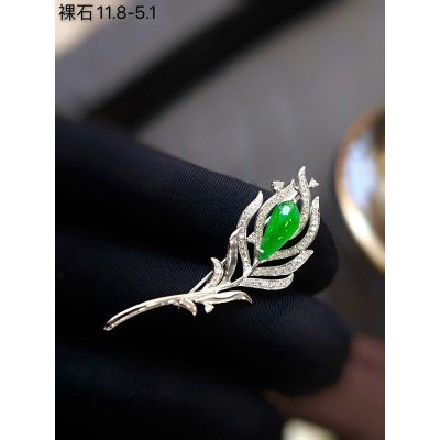 【翡翠胸针】自由在风里 | 设计款羽毛胸针,立体精致,独特小众,主石有种有色