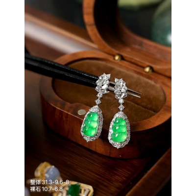 【翡翠耳坠】18k金镶满绿心形耳坠,设计款,戴上变氛围感美女