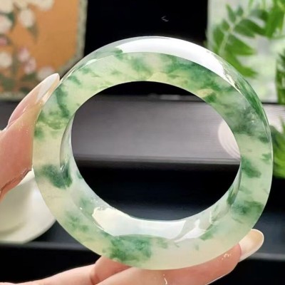 【翡翠手镯】高级国风玉镯,56/57圈口,冰润飘花正圈,尺寸:56.7×12.6×8.5mm。